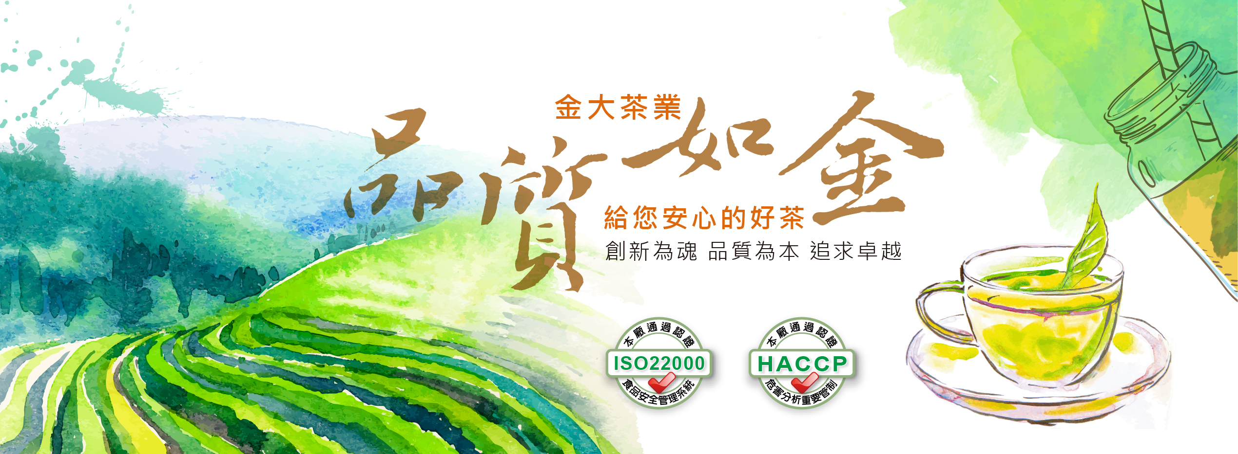 金大茶業有限公司通過國際ISO22000及HACCP雙重驗證,對於產品品質要求本公司將更嚴格把關,提供客戶更好的食品安全的保護。